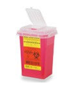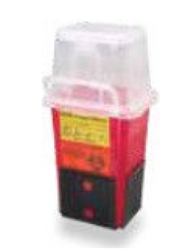 – Descartador de cortopunzantes (BD Sharps Collector™), con capacidad aproximada 1 Lt., en polipropileno rígidoDescartadores (virgen no reciclado) de color rojo, resistente a perforaciones, con sistema de cierre temporal y/o permanente. Cuerpo y tapa del recipiente encastrable e inviolable, demarcación de nivel de llenado en sus ¾ partes, con etiqueta aclaratoria y pictograma indicador de Riesgo Biológico. (Origen USA) (Catálogo 305635)